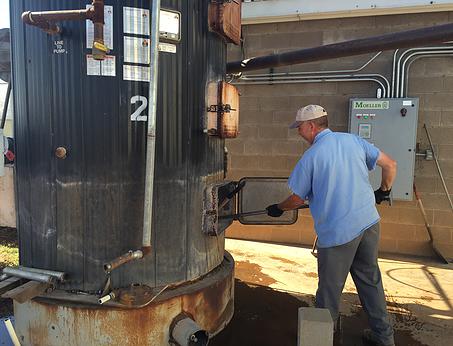 In order to reduce our use of fossil fuels, we recently installed a biomass boiler system. This boiler burns wood pellets that we make from locally grown waste pecan shells.